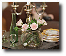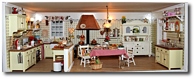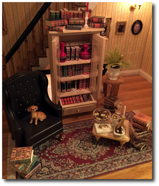 Bevor ich das Haus wieder zusammen baue, streiche ich noch die Kugeln auf den St�ben der Treppengel�nder gold an. Dann beginnt der Zusammenbau und ich r�ume alles wieder ein. Ich verzichte auf ein paar M�bel und gestalte und arrangiere hier und da etwas um. Zum Schluss schlie�e ich alle Lampen wieder an. Auch die neue Lampe in der K�che.