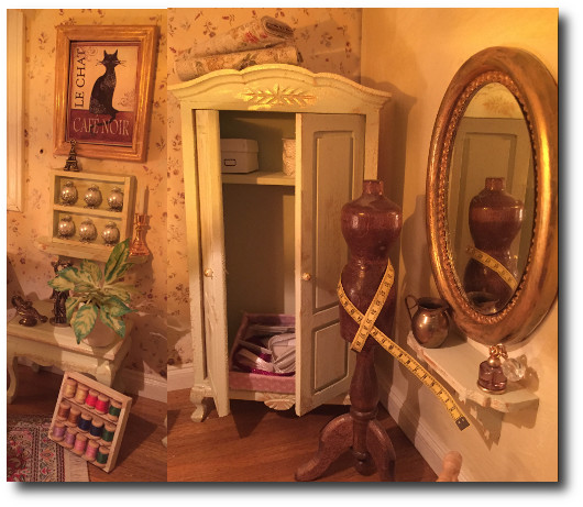 Oktober 2015: K�rzlich hatte ich mir einige "Rohm�belst�cke" zugelegt: einen Schrank und ein Beistelltischchen sowie einzelne kleinere Regalteile. Damit habe ich nun das N�hzimmer neu gestaltet. Mit feinen Farben von Farrow and Ball habe ich den M�beln und auch den W�nden ein neues Aussehen gegeben.
