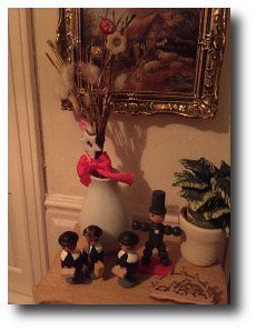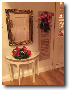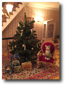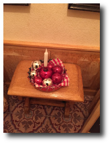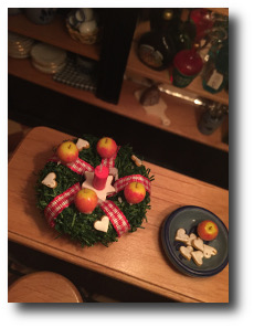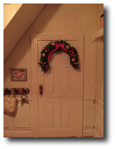 Dezember 2015: Und schon ist wieder Weihnachtszeit... Das Puppenhaus-Jubil�umsjahr geht schon zu Ende. Gestalte alles festlich. In diesem Jahr gibt es sogar Geschenke unter dem Weihnachtsbaum :) und endlich habe ich eine L�sung gefunden den T�rkranz so zu befestigen, dass er erstens h�lt und sich zweitens auch wieder bestens abnehmen l�sst und drittens sp�ter an seine Stelle der Osterkranz kommen kann... Alles wird gut. In diesem Sinne w�nsche ich allen Besuchern meiner Puppenhausseite eine frohe Weihnacht und einen guten Rutsch ins neue Jahr!