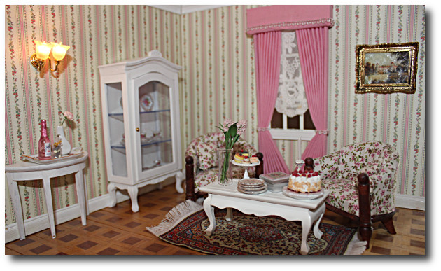 Februar 2015: Im Salon zieht ein neuer Vitrinenschrank ein. Das Tischchen links und der kleine Couchtisch sind schon eine Weile da. Aber so richtig gef�llt mir das alles auch noch nicht. Da ben�tige ich wohl noch weitere Inspirationen...